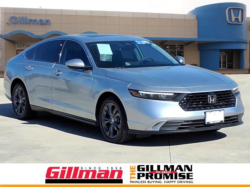 Gillman's Lifetime Engine Warranty lasts as long as you own your vehicle - free with the Gillman Pre-Owned Promise. If the vehicle isn't right for you, return it in purchase condition within 2 days or 200 miles as part of our Happy-Driving Guarantee. (Valid on vehicles under 90,000 miles and less than 7 years old). Experience the perfect blend of style, technology, and performance with this Silver 2024 Honda Accord EX Sedan. With a powerful 1.5L Turbo engine and smooth CVT transmission, you'll enjoy a responsive and efficient drive. Stay connected and safe with advanced features like Apple CarPlay and Android Auto smartphone integration, HondaLink smart device compatibility, lane keeping assist, adaptive cruise control with stop-and-go, and automatic emergency braking with pedestrian detection. The spacious cabin includes a customizable 10.2-inch digital instrument cluster, dual-zone automatic climate control, heated front seats, power-adjustable driver's seat with lumbar support, and a power moonroof. Enjoy added peace of mind with blind spot monitoring, rear cross traffic alert, and a multi-angle rearview camera. Convenience features such as remote engine start, Bluetooth, USB-C charging, and Wi-Fi hotspot capability make every journey enjoyable. The Accord EX also offers LED headlights, split-folding rear seats, and advanced safety systems for a secure and comfortable ride. Don't miss your chance to own one of the most well-rounded sedans on the road today. Schedule your test drive now! All vehicles subject to prior sale. We are not responsible for typographical errors and may change information without notice. Photos may not depict the actual vehicle. Tax, title, and license fees not included. Dealer Discount available to all buyers.Vehicles purchased from Gillman Automotive Group include a Bring It Back Guarantee: return the vehicle in purchase condition within two days or 200 miles. New current-model-year vehicles and qualifying pre-owned vehicles (under 90,000 miles and less than 7 years old) are eligible. Guarantee is non-transferable and has no cash value. Lifetime Warranty available on select pre-owned vehicles. See dealer for details; restrictions may apply.Certified Pre-Owned