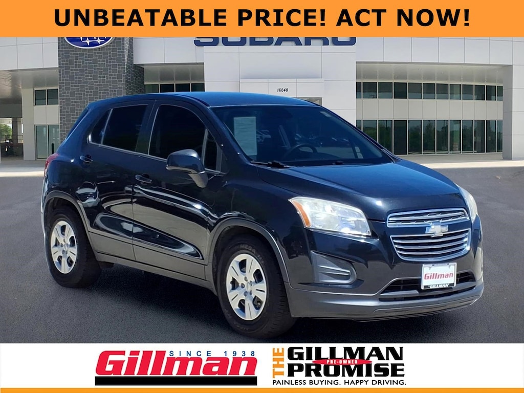 Gillman's Lifetime Engine Warranty lasts as long as you own your vehicle - free with the Gillman Pre-Owned Promise. If the vehicle isn't right for you, return it in purchase condition within 2 days or 200 miles as part of our Happy-Driving Guarantee. (Valid on vehicles under 90,000 miles and less than 7 years old). Discover the reliability and versatility of this Black 2016 Chevrolet Trax LS 4dr Crossover w/1FL. Powered by an efficient Ecotec 1.4L Turbo I4 engine and paired with a 6-speed shiftable automatic transmission, this Trax delivers a smooth drive with excellent fuel economy. Stay connected and entertained with a 7-inch MyLink infotainment touchscreen, Bluetooth wireless data link, and integrated apps like Pandora and Stitcher. Enjoy convenience features such as keyless entry, power windows, rearview camera system, and OnStar satellite communications with hotspot Wi-Fi capability. Safety comes standard with a suite of airbags, traction and stability control, LATCH system child seat anchors, and rear child safety door locks. The 60/40 split bench rear seat and multiple storage options-including in-floor and seatback storage-make this crossover perfect for active lifestyles. With stylish black and chrome accents, steel wheels, and body-color bumpers, this Trax stands out in any crowd. Schedule your test drive today and experience the comfort, technology, and practicality of the Trax LS. All vehicles subject to prior sale. We are not responsible for typographical errors and may change information without notice. Photos may not depict the actual vehicle. Tax, title, and license fees not included. Dealer Discount available to all buyers.Vehicles purchased from Gillman Automotive Group include a Bring It Back Guarantee: return the vehicle in purchase condition within two days or 200 miles. New current-model-year vehicles and qualifying pre-owned vehicles (under 90,000 miles and less than 7 years old) are eligible. Guarantee is non-transferable and has no cash value. Lifetime Warranty available on select pre-owned vehicles. See dealer for details; restrictions may apply.
