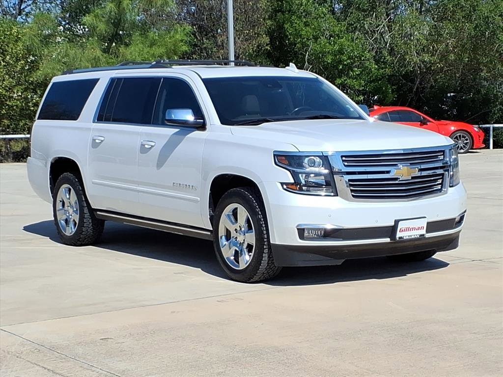 Experience luxury and versatility in this off white 2019 Chevrolet Suburban 4x4 Premier 1500 SUV. Powered by a robust EcoTec3 5.3L V8 engine with a 6-speed shiftable automatic transmission and advanced 4WD, it's ready for family adventures or executive travel. Enjoy ultimate comfort with leather-trimmed upholstery, heated and ventilated front seats, heated rear seats, and power-adjustable pedals. Stay connected and entertained with the Chevrolet Infotainment System, an 8-inch touchscreen, Apple CarPlay and Android Auto integration, rear seat Blu-Ray entertainment, and a Bose premium sound system. The Sun, Entertainment and Destinations Package adds a power tilt-sliding sunroof and navigation. Safety comes first with features like Front Automatic Emergency Braking, Lane Keeping Assist, Blind Spot Monitoring, Rear Cross Traffic Alert, and a surround vision rearview camera. Convenience options include power-retractable assist steps, hands-free power liftgate, remote start, and wireless charging. With spacious seating for the whole family and ample cargo space, this Suburban is the perfect blend of style, utility, and peace of mind. Schedule your test drive today!