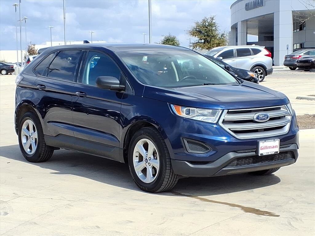 Gillman's Lifetime Engine Warranty lasts as long as you own your vehicle - free with the Gillman Pre-Owned Promise. If the vehicle isn't right for you, return it in purchase condition within 2 days or 200 miles as part of our Happy-Driving Guarantee. (Valid on vehicles under 90,000 miles and less than 7 years old). Discover comfort, style, and value with this Blue 2016 Ford Edge SE 4dr Crossover. Powered by a fuel-efficient EcoBoost 2.0L Turbo I4 engine and smooth 6-speed shiftable automatic transmission, this Edge is ideal for daily commutes or weekend getaways. Enjoy smart features like SYNC infotainment with Bluetooth and voice-operated hands-free calling, plus a rearview camera for confident parking. Stay comfortable with manually adjustable front seats, dual front knee airbags, and air filtration for a pleasant drive. Convenience abounds with push-button start, proximity entry, multiple cupholders, split folding rear seats, and ample cargo storage. Safety features include 4-wheel ABS, traction and stability control, programmable safety key, LATCH child seat anchors, and post-collision safety system. Modern touches such as LED taillights, body-color bumpers, chrome grille, and rear spoiler add to the appeal. This Ford Edge delivers reliability and versatility in a stylish package-schedule your test drive today! All vehicles subject to prior sale. We are not responsible for typographical errors and may change information without notice. Photos may not depict the actual vehicle. Tax, title, and license fees not included. Dealer Discount available to all buyers.Vehicles purchased from Gillman Automotive Group include a Bring It Back Guarantee: return the vehicle in purchase condition within two days or 200 miles. New current-model-year vehicles and qualifying pre-owned vehicles (under 90,000 miles and less than 7 years old) are eligible. Guarantee is non-transferable and has no cash value. Lifetime Warranty available on select pre-owned vehicles. See dealer for details; restrictions may apply.