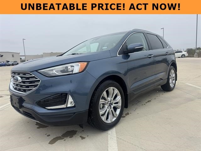 Gillman's Lifetime Engine Warranty lasts as long as you own your vehicle - free with the Gillman Pre-Owned Promise. If the vehicle isn't right for you, return it in purchase condition within 2 days or 200 miles as part of our Happy-Driving Guarantee. Experience comfort and style in this Blue 2019 Ford Edge Titanium 4dr Crossover. Powered by a responsive EcoBoost 2.0L Turbo I4 engine with an 8-speed shiftable automatic transmission, this Edge provides a smooth, efficient drive. Enjoy premium features like leather-trimmed upholstery, heated front seats, and a B&O PLAY premium sound system with 11 speakers and 800 watts of audio power. Stay connected with SYNC infotainment, an 8-inch touchscreen, Apple CarPlay and Android Auto, plus FordPass Connect with Wi-Fi hotspot. Advanced safety technologies include Ford Co-Pilot360 Assist+, front automatic emergency braking, pedestrian detection, lane keeping assist, blind spot monitoring, and rear cross traffic alert. Convenience is enhanced with a sensor-activated power liftgate, remote engine start, rain-sensing wipers, and driver seat memory settings. The Titanium trim adds luxury touches like ambient lighting, chrome window trim, and a power tilt/telescopic steering wheel. This Edge is ready to elevate your daily commute or weekend getaway. Schedule your test drive today! All vehicles subject to prior sale. We are not responsible for typographical errors and may change information without notice. Photos may not depict the actual vehicle. Tax, title, and license fees not included. Dealer Discount available to all buyers.Vehicles purchased from Gillman Automotive Group include a Bring It Back Guarantee: return the vehicle in purchase condition within two days or 200 miles. New current-model-year vehicles and qualifying pre-owned vehicles (under 90,000 miles and less than 7 years old) are eligible. Guarantee is non-transferable and has no cash value. Lifetime Warranty available on select pre-owned vehicles. See dealer for details; restrictions may apply.