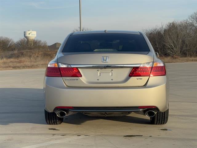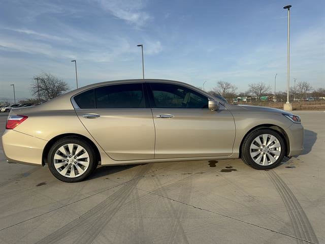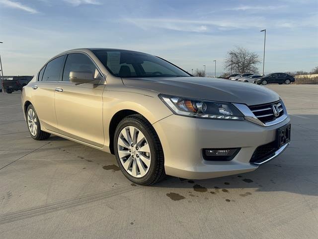Gillman's Lifetime Engine Warranty lasts as long as you own your vehicle - free with the Gillman Pre-Owned Promise. If the vehicle isn't right for you, return it in purchase condition within 2 days or 200 miles as part of our Happy-Driving Guarantee. (Valid on vehicles under 90,000 miles and less than 7 years old). Experience luxury and performance in this GOLD 2015 Honda Accord EX-L V6 Sedan. Powered by a robust 3.5L V6 engine with 278hp and a smooth 6-speed shiftable automatic transmission, this Accord delivers both excitement and reliability. Enjoy premium features like leather upholstery, heated front seats, a power moonroof, and dual-zone automatic climate control for ultimate comfort. The advanced infotainment system features a 7-inch touchscreen, Bluetooth connectivity, HondaLink, SiriusXM satellite radio, Pandora app integration, and a premium 7-speaker audio system with subwoofer. Safety comes standard with lane deviation sensors, blind spot camera, rear multi-view camera, LED daytime running lights, and front/rear emergency locking retractors. Convenience is at your fingertips with push-button start, proximity entry, HomeLink universal garage door opener, and power-adjustable driver's seat with memory. This Accord also sports aluminum alloy wheels, chrome trim, and a spacious, well-designed interior with plenty of storage. Don't miss your chance to own a well-maintained, stylish, and feature-packed sedan that's ready for the road. All vehicles subject to prior sale. We are not responsible for typographical errors and may change information without notice. Photos may not depict the actual vehicle. Tax, title, and license fees not included. Dealer Discount available to all buyers.Vehicles purchased from Gillman Automotive Group include a Bring It Back Guarantee: return the vehicle in purchase condition within two days or 200 miles. New current-model-year vehicles and qualifying pre-owned vehicles (under 90,000 miles and less than 7 years old) are eligible. Guarantee is non-transferable and has no cash value. Lifetime Warranty available on select pre-owned vehicles. See dealer for details; restrictions may apply.