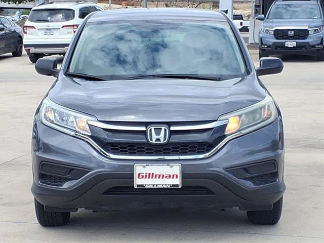 Clean CARFAX.Odometer is 16359 miles below market average! 27/34 City/Highway MPGGillman Honda of San Antonio is very proud to offer this stunning 2015 Honda CR-V LX. Well equipped with 16 Styled Steel Wheels, 4 Speakers, 4-Wheel Disc Brakes, 5.048 Axle Ratio, ABS brakes, Air Conditioning, AM/FM radio, AM/FM/CD Audio System w/4 Speakers, Brake assist, Bumpers: body-color, CD player, Cloth Seat Trim, Compass, Delay-off headlights, Driver door bin, Driver vanity mirror, Dual front impact airbags, Dual front side impact airbags, Electronic Stability Control, Exterior Parking Camera Rear, Four wheel independent suspension, Front anti-roll bar, Front Bucket Seats, Front Center Armrest, Front reading lights, Illuminated entry, Low tire pressure warning, Occupant sensing airbag, Outside temperature display, Overhead airbag, Overhead console, Panic alarm, Passenger door bin, Passenger vanity mirror, Power door mirrors, Power steering, Power windows, Radio data system, Rear anti-roll bar, Rear seat center armrest, Rear window defroster, Rear window wiper, Remote keyless entry, Speed control, Speed-sensing steering, Split folding rear seat, Steering wheel mounted audio controls, Tachometer, Telescoping steering wheel, Tilt steering wheel, Traction control, and Trip computer.