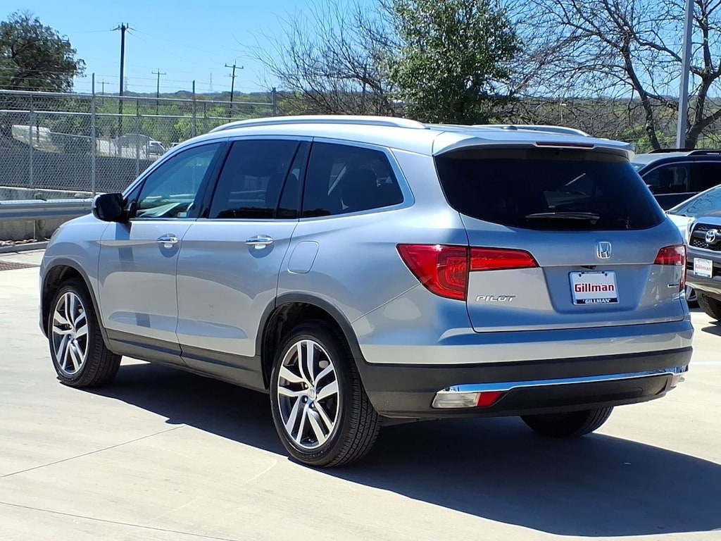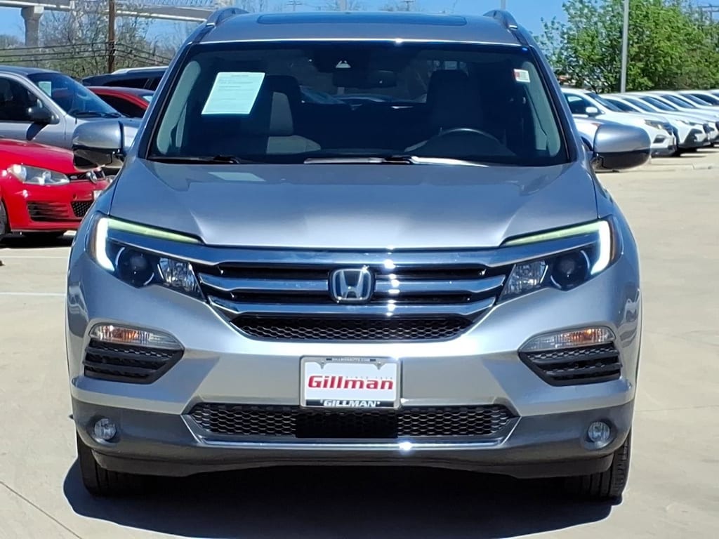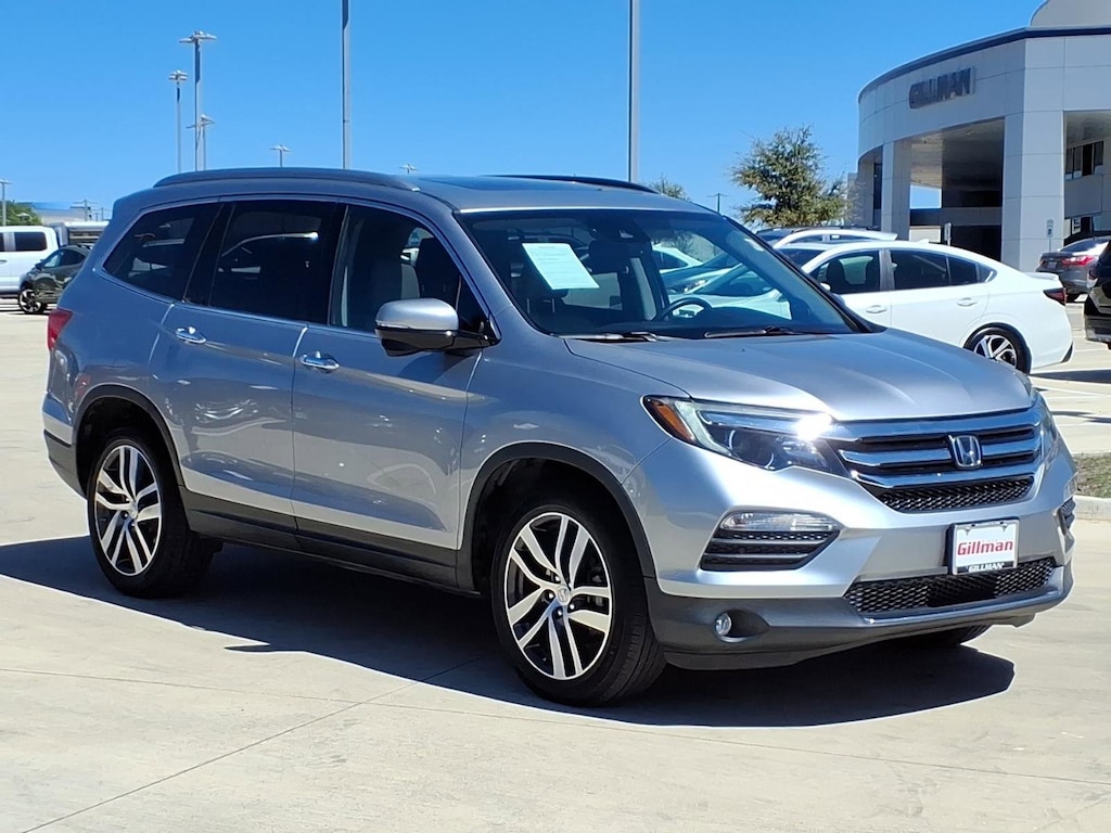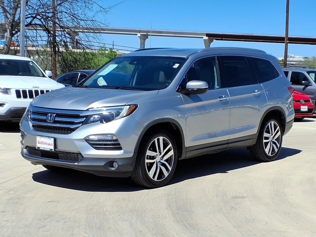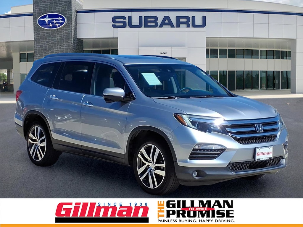 Gillman's Lifetime Engine Warranty lasts as long as you own your vehicle - free with the Gillman Pre-Owned Promise. If the vehicle isn't right for you, return it in purchase condition within 2 days or 200 miles as part of our Happy-Driving Guarantee. (Valid on vehicles under 90,000 miles and less than 7 years old). Experience comfort, reliability, and advanced features in this Silver 2018 Honda Pilot Touring 4dr SUV. Powered by a robust 3.5L V6 engine paired with a smooth 9-speed automatic transmission and front-wheel drive, this Pilot is ready for family adventures and daily commutes. Enjoy premium conveniences like leather-trimmed seats, heated front seats, a power moonroof, and a hands-free power liftgate. Stay connected with an 8-inch touchscreen infotainment system, Apple CarPlay, Android Auto, Bluetooth, and a rear Blu-Ray/DVD player to keep everyone entertained. Safety is top-notch with adaptive cruise control, lane keeping assist, blind spot camera, front and rear parking sensors, automatic emergency braking, and pedestrian detection. Three-zone automatic climate control, rear seat entertainment, and seating for up to eight make every journey enjoyable. Aluminum alloy wheels, chrome roof rails, and LED daytime running lights complete the look. This well-maintained Pilot Touring is a perfect blend of luxury, technology, and Honda dependability. Schedule your test drive today! All vehicles subject to prior sale. We are not responsible for typographical errors and may change information without notice. Photos may not depict the actual vehicle. Tax, title, and license fees not included. Dealer Discount available to all buyers.Vehicles purchased from Gillman Automotive Group include a Bring It Back Guarantee: return the vehicle in purchase condition within two days or 200 miles. New current-model-year vehicles and qualifying pre-owned vehicles (under 90,000 miles and less than 7 years old) are eligible. Guarantee is non-transferable and has no cash value. Lifetime Warranty available on select pre-owned vehicles. See dealer for details; restrictions may apply.