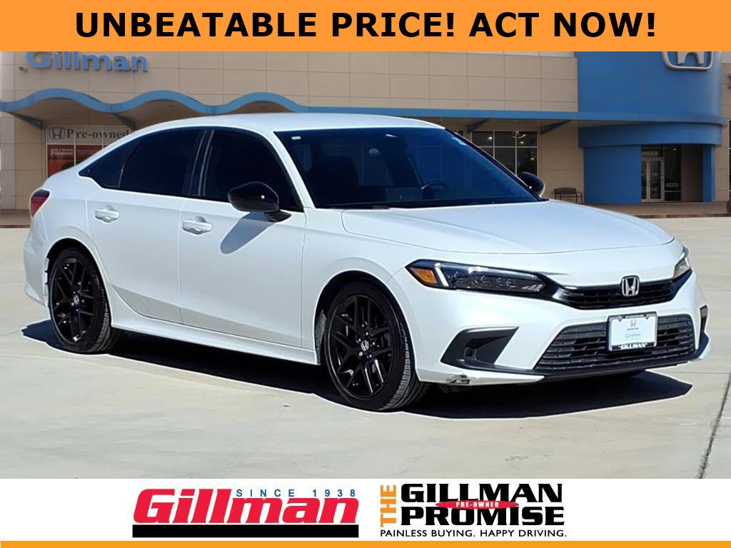 Gillman's Lifetime Engine Warranty lasts as long as you own your vehicle - free with the Gillman Pre-Owned Promise. If the vehicle isn't right for you, return it in purchase condition within 2 days or 200 miles as part of our Happy-Driving Guarantee. (Valid on vehicles under 90,000 miles and less than 7 years old). Drive in style with this White 2024 Honda Civic Sport 4dr Sedan! Enjoy sporty design and modern comfort with features like Apple CarPlay and Android Auto, a 7-inch touchscreen infotainment system, and HondaLink app compatibility. Stay safe and confident on every journey with Honda Sensing technology, including adaptive cruise control, lane keeping assist, automatic emergency braking with pedestrian detection, and a rear multi-view camera. The Civic Sport boasts a fuel-efficient 2.0L I4 engine paired with a 7-speed shiftable CVT for a smooth ride. Additional highlights include remote engine start, auto high beam headlights, LED daytime running lights, proximity entry, push-button start, and a leather-wrapped steering wheel. Spacious seating, customizable instrument cluster, and ample cargo space make this sedan a perfect choice for daily commutes or road trips. Don't miss your chance to own this standout Civic Sport-visit us for a test drive today! All vehicles subject to prior sale. We are not responsible for typographical errors and may change information without notice. Photos may not depict the actual vehicle. Tax, title, and license fees not included. Dealer Discount available to all buyers.Vehicles purchased from Gillman Automotive Group include a Bring It Back Guarantee: return the vehicle in purchase condition within two days or 200 miles. New current-model-year vehicles and qualifying pre-owned vehicles (under 90,000 miles and less than 7 years old) are eligible. Guarantee is non-transferable and has no cash value. Lifetime Warranty available on select pre-owned vehicles. See dealer for details; restrictions may apply.
