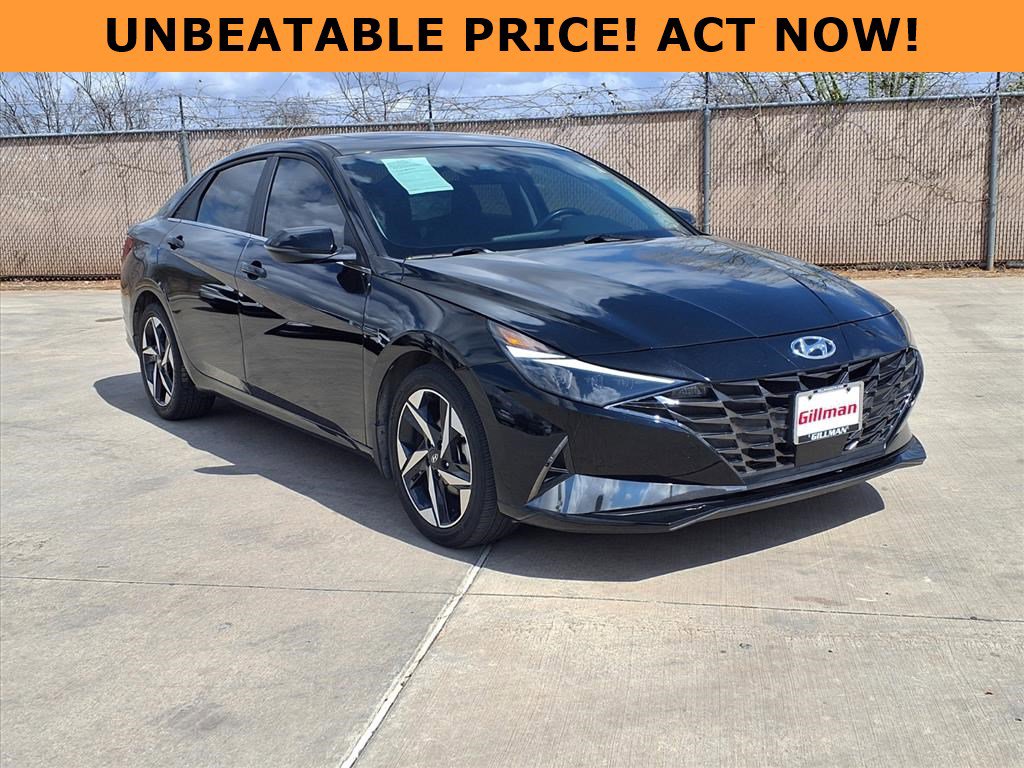 Gillman's Lifetime Engine Warranty lasts as long as you own your vehicle - free with the Gillman Pre-Owned Promise. If the vehicle isn't right for you, return it in purchase condition within 2 days or 200 miles as part of our Happy-Driving Guarantee. (Valid on vehicles under 90,000 miles and less than 7 years old). Experience sophistication and innovation with the Black 2023 Hyundai ELANTRA Limited 4dr Sedan. This sleek sedan features luxurious leather-trimmed upholstery, a spacious interior, and advanced technology for comfort and safety. Enjoy seamless connectivity with a 10.25-inch infotainment touchscreen, integrated Apple CarPlay and Android Auto, wireless charging, and premium Bose audio. Stay protected with advanced driver assistance features including lane keeping assist with blind spot integration, adaptive cruise control, intersection/junction turn automatic emergency braking, rear cross traffic alert, and a vehicle exit safety system. The ELANTRA Limited also offers a power glass moonroof, heated front seats, adaptive speed limiting, and Blue Link smart device compatibility for remote functions and maintenance scheduling. Powered by a fuel-efficient 2.0L I4 engine paired with a CVT, this FWD sedan delivers a smooth, responsive ride. Don't miss your chance to drive this stylish, well-equipped, and reliable Hyundai ELANTRA Limited-perfect for those who demand both comfort and confidence on the road. All vehicles subject to prior sale. We are not responsible for typographical errors and may change information without notice. Photos may not depict the actual vehicle. Tax, title, and license fees not included. Dealer Discount available to all buyers.Vehicles purchased from Gillman Automotive Group include a Bring It Back Guarantee: return the vehicle in purchase condition within two days or 200 miles. New current-model-year vehicles and qualifying pre-owned vehicles (under 90,000 miles and less than 7 years old) are eligible. Guarantee is non-transferable and has no cash value. Lifetime Warranty available on select pre-owned vehicles. See dealer for details; restrictions may apply.