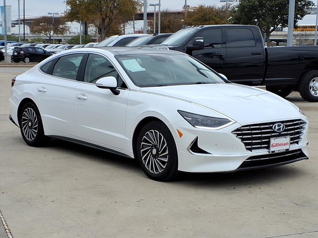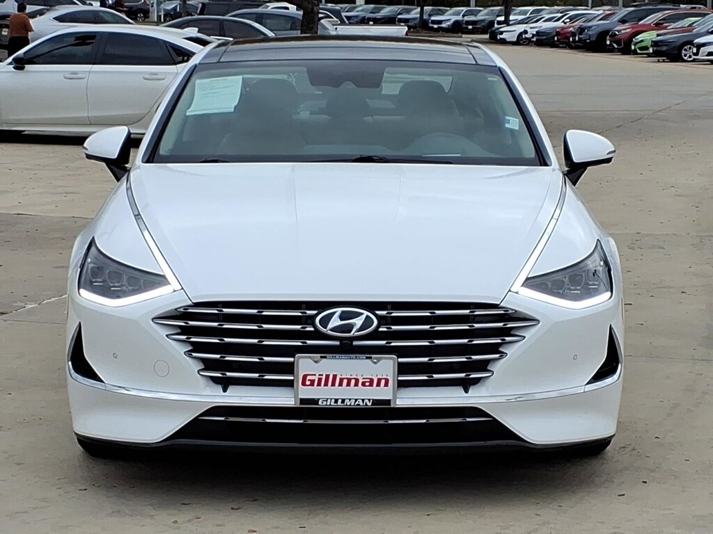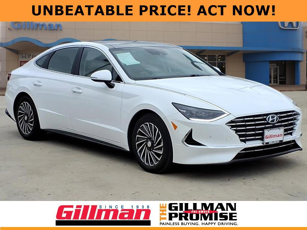 Gillman's Lifetime Engine Warranty lasts as long as you own your vehicle - free with the Gillman Pre-Owned Promise. If the vehicle isn't right for you, return it in purchase condition within 2 days or 200 miles as part of our Happy-Driving Guarantee. (Valid on vehicles under 90,000 miles and less than 7 years old). Experience luxury and efficiency with this White 2023 Hyundai SONATA Hybrid Limited. Enjoy a smooth, fuel-saving drive with its advanced 2.0L Hybrid I4 engine and 6-speed shiftable automatic transmission. Inside, you'll find premium leather-trimmed upholstery, a panoramic sunroof, and a 10.25-inch infotainment touchscreen featuring Android Auto and Apple CarPlay. Safety is top priority with features like Intersection Automatic Emergency Braking, Lane Centering Guidance, Rear Cross Traffic Alert, and a Surround View Camera System. Drive confidently with Adaptive Cruise Control, Blind Spot Monitoring, and Remote Engine Start. Enjoy the convenience of a sensor-activated rear trunk, ventilated and heated front seats, and a Bose premium sound system. Stay connected and in control with Blue Link smart device compatibility, wireless charging, and navigation with real-time traffic. This Sonata Hybrid offers exceptional technology, comfort, and safety for drivers who demand more from their sedan. All vehicles subject to prior sale. We are not responsible for typographical errors and may change information without notice. Photos may not depict the actual vehicle. Tax, title, and license fees not included. Dealer Discount available to all buyers.Vehicles purchased from Gillman Automotive Group include a Bring It Back Guarantee: return the vehicle in purchase condition within two days or 200 miles. New current-model-year vehicles and qualifying pre-owned vehicles (under 90,000 miles and less than 7 years old) are eligible. Guarantee is non-transferable and has no cash value. Lifetime Warranty available on select pre-owned vehicles. See dealer for details; restrictions may apply.