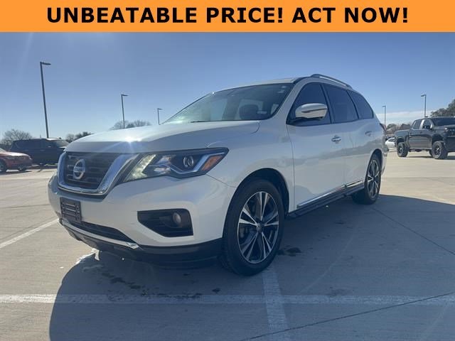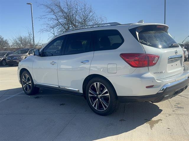 Gillman's Lifetime Engine Warranty lasts as long as you own your vehicle - free with the Gillman Pre-Owned Promise. If the vehicle isn't right for you, return it in purchase condition within 2 days or 200 miles as part of our Happy-Driving Guarantee. (Valid on vehicles under 90,000 miles and less than 7 years old). Experience luxury and capability in this 2019 Nissan Pathfinder Platinum in stunning white. Powered by a robust 3.5L V6 engine and smooth CVT, this SUV offers a refined ride with front-wheel drive. Enjoy comfort and convenience with heated and cooled leather seats, a panoramic moonroof, and a premium Bose sound system. Stay connected and in control with an 8-inch NissanConnect infotainment display, navigation, Bluetooth, and smart device app functions. Safety comes first with surround view camera, front automatic emergency braking, adaptive cruise control, blind spot warning, and rear cross traffic alert. The third-row seating, sliding rear seat, and power liftgate provide family-friendly versatility. Additional highlights include LED headlights, remote engine start, power tilt/telescopic steering wheel, and a Class III trailer hitch. Meticulously maintained and ready for your next adventure, this Pathfinder Platinum delivers style, tech, and peace of mind. All vehicles subject to prior sale. We are not responsible for typographical errors and may change information without notice. Photos may not depict the actual vehicle. Tax, title, and license fees not included. Dealer Discount available to all buyers.Vehicles purchased from Gillman Automotive Group include a Bring It Back Guarantee: return the vehicle in purchase condition within two days or 200 miles. New current-model-year vehicles and qualifying pre-owned vehicles (under 90,000 miles and less than 7 years old) are eligible. Guarantee is non-transferable and has no cash value. Lifetime Warranty available on select pre-owned vehicles. See dealer for details; restrictions may apply.