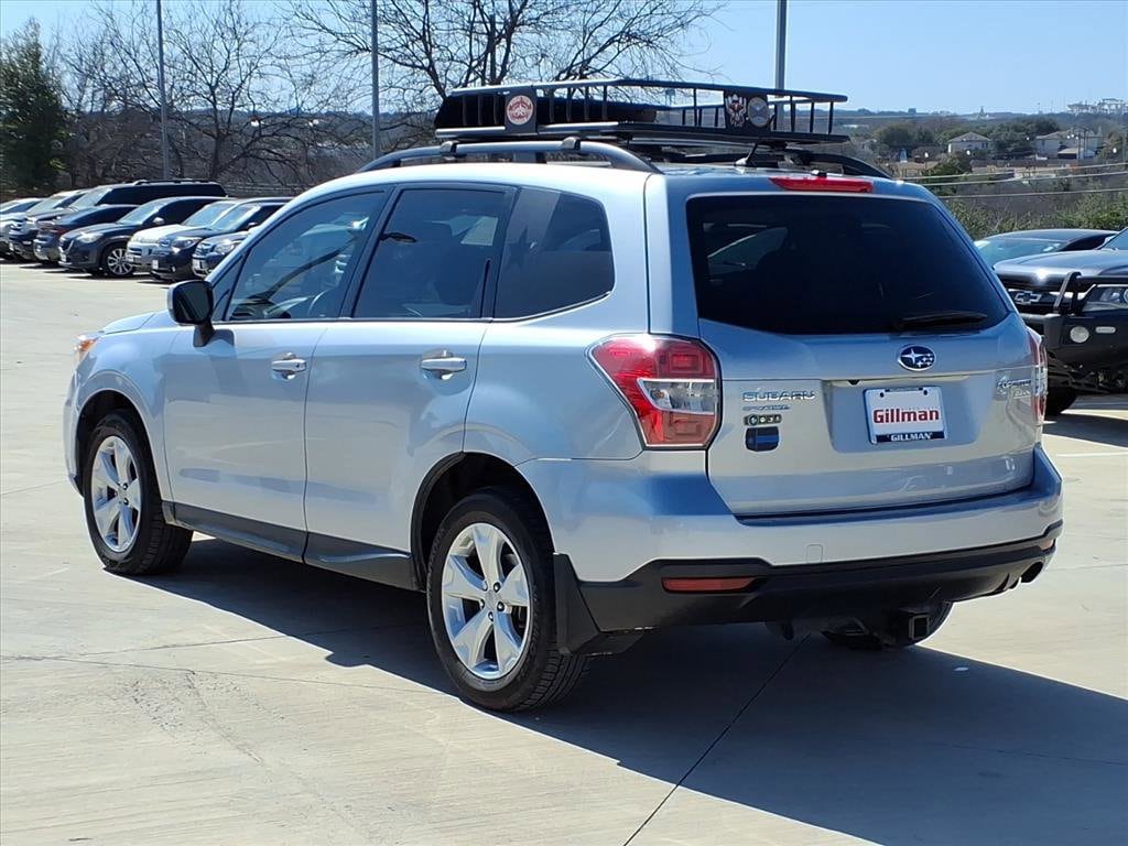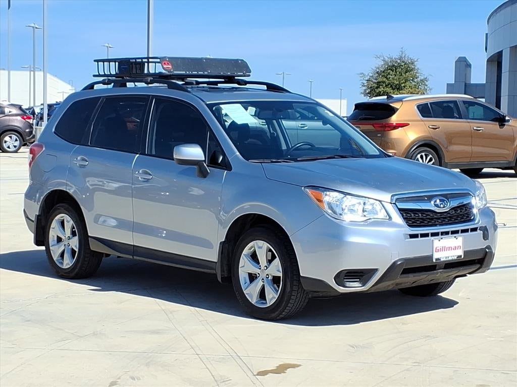 Gillman's Lifetime Engine Warranty lasts as long as you own your vehicle - free with the Gillman Pre-Owned Promise. If the vehicle isn't right for you, return it in purchase condition within 2 days or 200 miles as part of our Happy-Driving Guarantee. (Valid on vehicles under 90,000 miles and less than 7 years old). Discover reliability and versatility in this Silver 2015 Subaru Forester AWD 2.5i Premium. With Subaru's legendary all-wheel drive and a smooth CVT, this wagon is ready for all-weather adventures or daily commutes. Enjoy premium features like a panoramic power moonroof, Bluetooth connectivity, HD Radio, and a rearview camera system for added convenience and safety. The power-adjustable driver's seat with lumbar support ensures comfort on long drives, while aluminum alloy wheels add a touch of style. Stay connected with MySubaru app compatibility for maintenance scheduling and vehicle location. Safety is prioritized with traction and stability control, front and rear crumple zones, and a full suite of airbags. Ample cargo space, split-folding rear seats, and thoughtful storage options like door pockets and a grocery bag holder make this Forester as practical as it is comfortable. Schedule your test drive today and experience why Subaru Forester remains a top choice for those who demand capability and value. All vehicles subject to prior sale. We are not responsible for typographical errors and may change information without notice. Photos may not depict the actual vehicle. Tax, title, and license fees not included. Dealer Discount available to all buyers.Vehicles purchased from Gillman Automotive Group include a Bring It Back Guarantee: return the vehicle in purchase condition within two days or 200 miles. New current-model-year vehicles and qualifying pre-owned vehicles (under 90,000 miles and less than 7 years old) are eligible. Guarantee is non-transferable and has no cash value. Lifetime Warranty available on select pre-owned vehicles. See dealer for details; restrictions may apply.