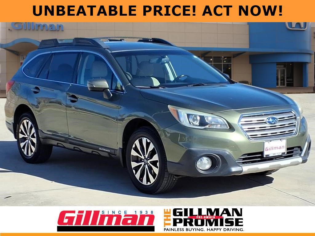 Gillman's Lifetime Engine Warranty lasts as long as you own your vehicle - free with the Gillman Pre-Owned Promise. If the vehicle isn't right for you, return it in purchase condition within 2 days or 200 miles as part of our Happy-Driving Guarantee. (Valid on vehicles under 90,000 miles and less than 7 years old). Experience adventure and reliability with this Green 2016 Subaru Outback 2.5i Limited AWD Wagon. Powered by a 2.5L H4 engine and Subaru's legendary all-wheel drive, it's ready for any road or weather. Enjoy luxury features like leather-trimmed upholstery, heated front and rear seats, and a power-operated rear liftgate for convenience. Stay connected with the STARLINK infotainment system, 7-inch touchscreen, Harman/Kardon premium sound, Bluetooth, and smartphone app integration. Safety is a top priority with blind spot detection, rear cross traffic alert, rearview camera, and multiple airbags. Practical touches include all-weather floor mats, roof rails, cargo cover, and split-folding rear seats for extra versatility. This Outback combines comfort, technology, and rugged capability-perfect for families or outdoor enthusiasts. Don't miss out on this dependable and well-equipped wagon. All vehicles subject to prior sale. We are not responsible for typographical errors and may change information without notice. Photos may not depict the actual vehicle. Tax, title, and license fees not included. Dealer Discount available to all buyers.Vehicles purchased from Gillman Automotive Group include a Bring It Back Guarantee: return the vehicle in purchase condition within two days or 200 miles. New current-model-year vehicles and qualifying pre-owned vehicles (under 90,000 miles and less than 7 years old) are eligible. Guarantee is non-transferable and has no cash value. Lifetime Warranty available on select pre-owned vehicles. See dealer for details; restrictions may apply.