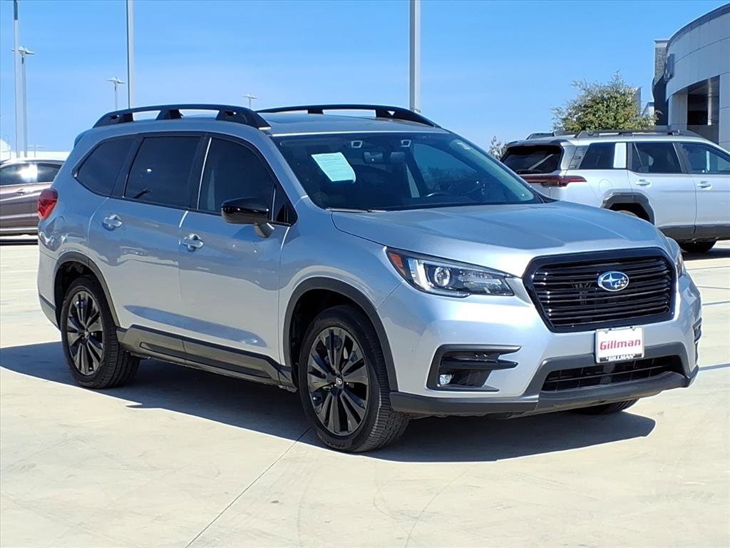 Gillman's Lifetime Engine Warranty lasts as long as you own your vehicle - free with the Gillman Pre-Owned Promise. If the vehicle isn't right for you, return it in purchase condition within 2 days or 200 miles as part of our Happy-Driving Guarantee. (Valid on vehicles under 90,000 miles and less than 7 years old). Experience adventure and comfort in this Silver 2022 Subaru Ascent AWD Onyx Edition. This SUV is powered by a 2.4L Turbo engine paired with an 8-speed shiftable CVT for responsive performance and efficiency. Enjoy peace of mind with Subaru's advanced safety features, including Front and Rear Automatic Emergency Braking, Lane Centering, Adaptive Cruise Control, Blind Spot Detection, and Rear Cross Traffic Alert. The spacious interior features captain's chairs, a panoramic moonroof, navigation system, and Apple CarPlay/Android Auto on an 8-inch touchscreen. Stay connected with STARLINK infotainment, Wi-Fi hotspot compatibility, and multiple USB outlets for all passengers. Convenience abounds with a power liftgate, heated front seats and steering wheel, and all-weather floor mats. With bold black exterior accents, alloy wheels, and third-row seating, the Ascent Onyx Edition is ready for families and explorers alike. Visit us today to test drive this well-equipped, stylish SUV and see why Subaru is the choice for those who love to drive. All vehicles subject to prior sale. We are not responsible for typographical errors and may change information without notice. Photos may not depict the actual vehicle. Tax, title, and license fees not included. Dealer Discount available to all buyers.Vehicles purchased from Gillman Automotive Group include a Bring It Back Guarantee: return the vehicle in purchase condition within two days or 200 miles. New current-model-year vehicles and qualifying pre-owned vehicles (under 90,000 miles and less than 7 years old) are eligible. Guarantee is non-transferable and has no cash value. Lifetime Warranty available on select pre-owned vehicles. See dealer for details; restrictions may apply.