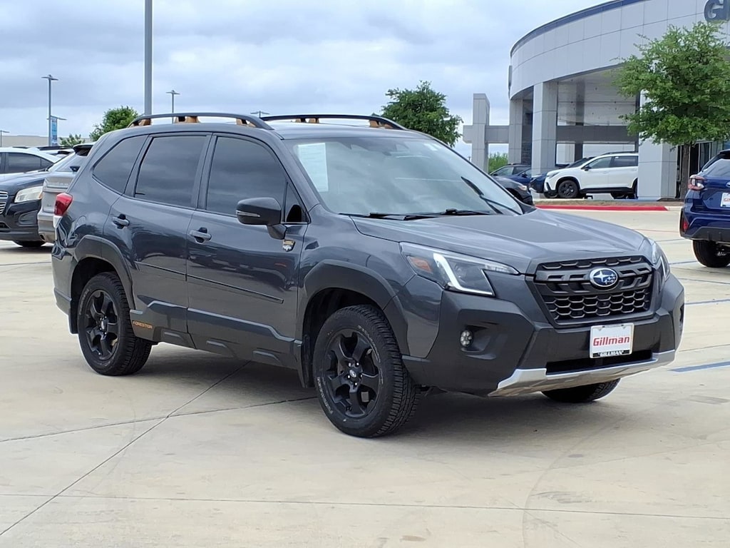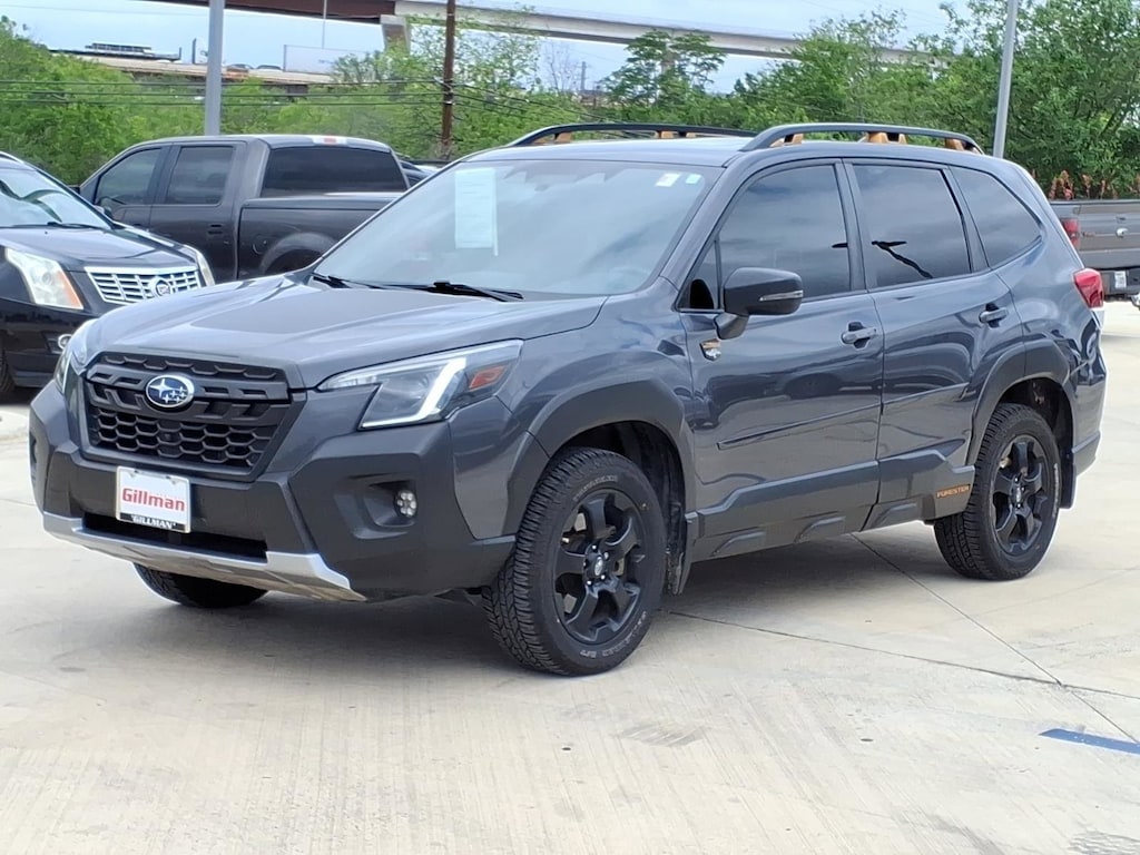 Gillman's Lifetime Engine Warranty lasts as long as you own your vehicle - free with the Gillman Pre-Owned Promise. If the vehicle isn't right for you, return it in purchase condition within 2 days or 200 miles as part of our Happy-Driving Guarantee. (Valid on vehicles under 90,000 miles and less than 7 years old). Discover adventure with this rugged Gray 2022 Subaru Forester Wilderness AWD Crossover. Built for all terrains, it features Subaru's advanced All-Wheel Drive for superior handling and confidence in any weather. Under the hood, you'll find a powerful and efficient 2.5L DOHC 16-Valve 4-Cylinder engine with Dual Active Valve Control System (DAVCS) for a smooth and responsive drive. The Wilderness trim offers extra ground clearance and unique exterior styling, perfect for those who love the outdoors. Don't miss your chance to own a versatile and reliable crossover, ready for your next journey. All vehicles subject to prior sale. We are not responsible for typographical errors and may change information without notice. Photos may not depict the actual vehicle. Tax, title, and license fees not included. Dealer Discount available to all buyers.Vehicles purchased from Gillman Automotive Group include a Bring It Back Guarantee: return the vehicle in purchase condition within two days or 200 miles. New current-model-year vehicles and qualifying pre-owned vehicles (under 90,000 miles and less than 7 years old) are eligible. Guarantee is non-transferable and has no cash value. Lifetime Warranty available on select pre-owned vehicles. See dealer for details; restrictions may apply.