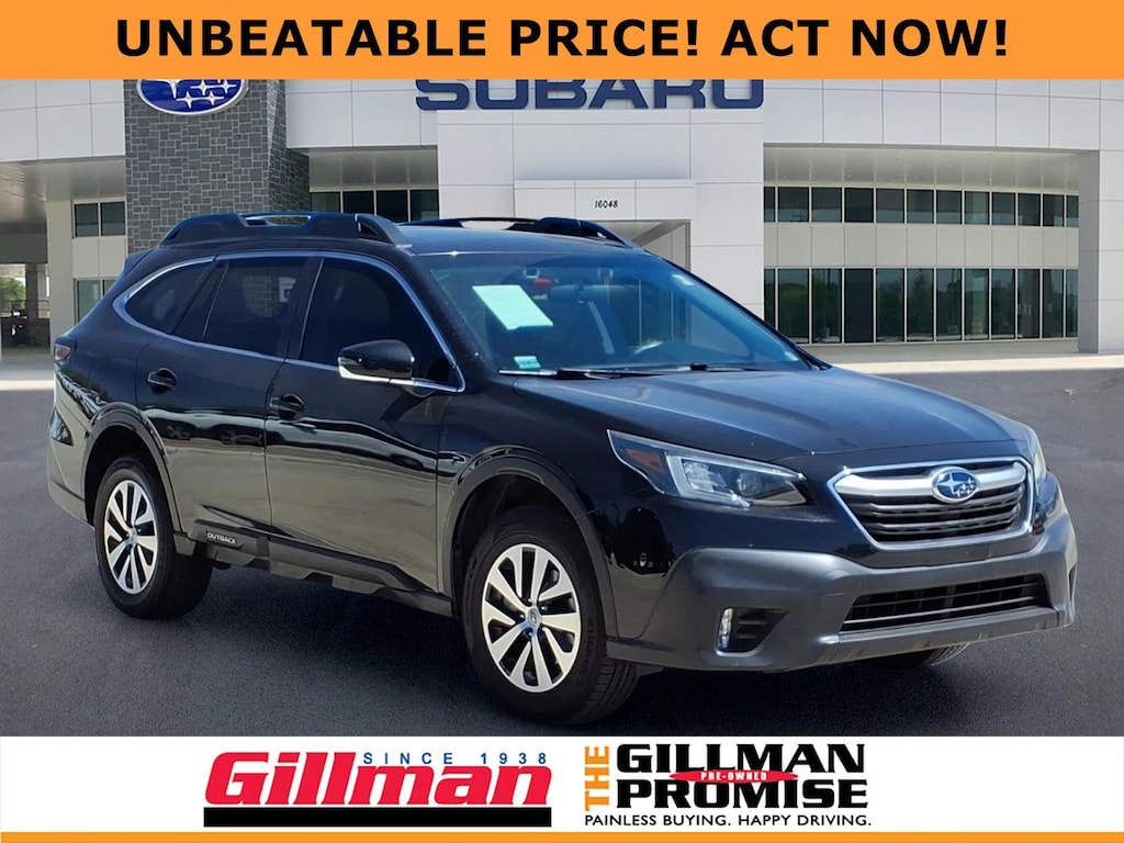 Gillman's Lifetime Engine Warranty lasts as long as you own your vehicle - free with the Gillman Pre-Owned Promise. If the vehicle isn't right for you, return it in purchase condition within 2 days or 200 miles as part of our Happy-Driving Guarantee. (Valid on vehicles under 90,000 miles and less than 7 years old). Discover the versatility and comfort of this Black 2022 Subaru Outback AWD Premium 4dr Crossover. Powered by a fuel-efficient 2.5L H4 engine with an 8-speed shiftable CVT, this Outback is ready for any adventure with full-time AWD. Stay connected with the advanced 11.6-inch STARLINK infotainment system featuring Apple CarPlay, Android Auto, and Bluetooth. Safety comes standard with Front Automatic Emergency Braking, Adaptive Cruise Control, Lane Keeping Assist, Blind Spot Detection, and Rear Cross Traffic Alert. Enjoy convenience features like heated front seats, a power driver's seat with height and lumbar adjustments, hands-free liftgate, and all-weather floor liners. The spacious interior includes a retractable cargo cover, split-folding rear seats, and numerous smart storage options. The panoramic moonroof and aluminum alloy wheels add style, while the roof rails and crossbars offer extra utility. Maintenance scheduling and remote start functions are accessible via the MySubaru app. Experience premium comfort, cutting-edge tech, and legendary Subaru reliability-test drive today! All vehicles subject to prior sale. We are not responsible for typographical errors and may change information without notice. Photos may not depict the actual vehicle. Tax, title, and license fees not included. Dealer Discount available to all buyers.Vehicles purchased from Gillman Automotive Group include a Bring It Back Guarantee: return the vehicle in purchase condition within two days or 200 miles. New current-model-year vehicles and qualifying pre-owned vehicles (under 90,000 miles and less than 7 years old) are eligible. Guarantee is non-transferable and has no cash value. Lifetime Warranty available on select pre-owned vehicles. See dealer for details; restrictions may apply.