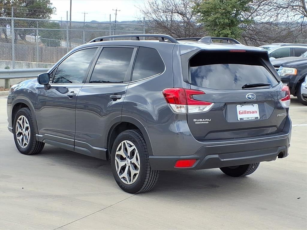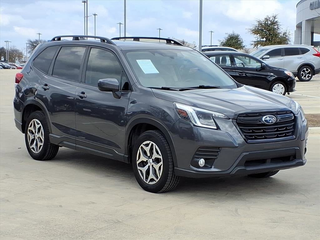 Gillman's Lifetime Engine Warranty lasts as long as you own your vehicle - free with the Gillman Pre-Owned Promise. If the vehicle isn't right for you, return it in purchase condition within 2 days or 200 miles as part of our Happy-Driving Guarantee. (Valid on vehicles under 90,000 miles and less than 7 years old). Discover the versatility and reliability of the 2023 Subaru Forester AWD Premium. This stylish gray crossover is ready for any adventure with Subaru's renowned all-wheel-drive and a fuel-efficient 2.5L engine. Stay safe and connected thanks to advanced features like Blind Spot Detection, Rear Cross Traffic Alert, Front Automatic Emergency Braking with Pedestrian Detection, Lane Centering, and Adaptive Cruise Control. Enjoy modern convenience with a Power Rear Gate, heated front seats, a panoramic sunroof, Apple CarPlay and Android Auto integration, and STARLINK infotainment on a 6.5-inch touchscreen. The spacious interior includes all-weather floor liners, a cargo tray, and a retractable cargo cover-perfect for active lifestyles. With its premium comfort, cutting-edge safety, and legendary Subaru capability, this Forester is the ideal choice for families and explorers alike. Schedule your test drive today! All vehicles subject to prior sale. We are not responsible for typographical errors and may change information without notice. Photos may not depict the actual vehicle. Tax, title, and license fees not included. Dealer Discount available to all buyers.Vehicles purchased from Gillman Automotive Group include a Bring It Back Guarantee: return the vehicle in purchase condition within two days or 200 miles. New current-model-year vehicles and qualifying pre-owned vehicles (under 90,000 miles and less than 7 years old) are eligible. Guarantee is non-transferable and has no cash value. Lifetime Warranty available on select pre-owned vehicles. See dealer for details; restrictions may apply.