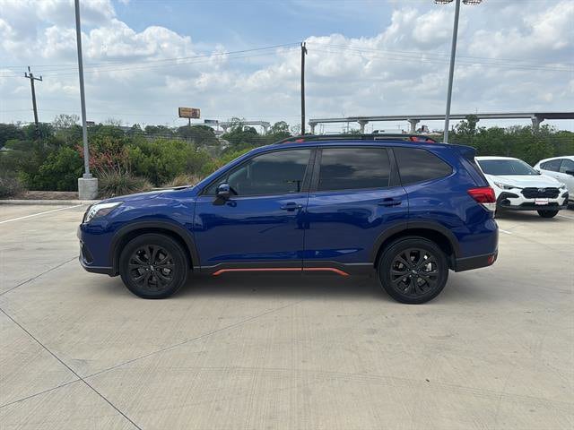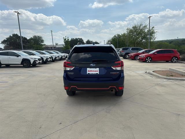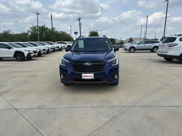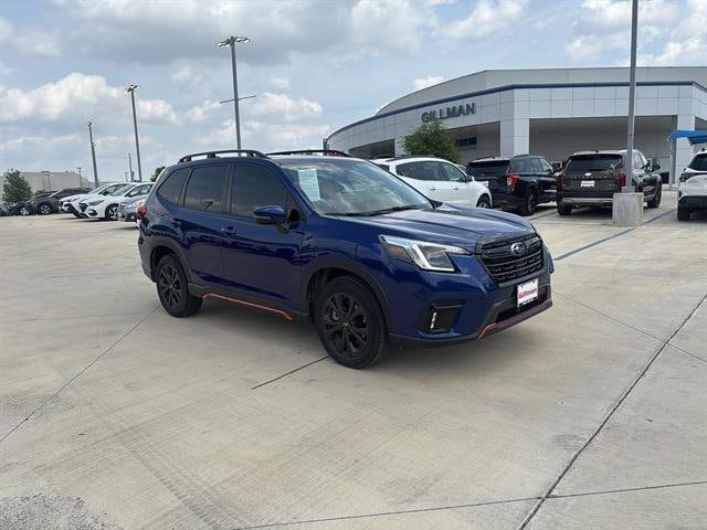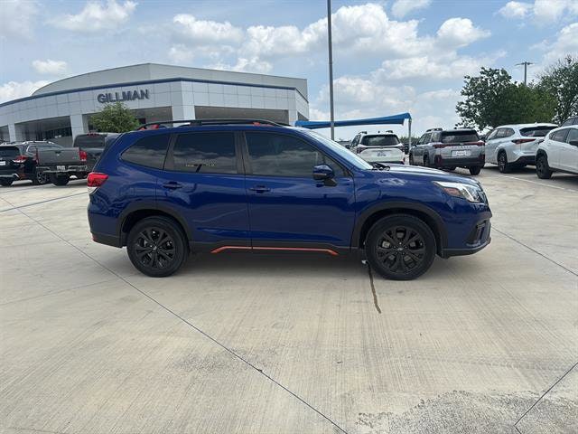 Gillman's Lifetime Engine Warranty lasts as long as you own your vehicle - free with the Gillman Pre-Owned Promise. If the vehicle isn't right for you, return it in purchase condition within 2 days or 200 miles as part of our Happy-Driving Guarantee. (Valid on vehicles under 90,000 miles and less than 7 years old). Experience adventure and reliability in this Blue 2023 Subaru Forester AWD Sport 4dr Crossover. Designed for both comfort and capability, it features Subaru's legendary Symmetrical All-Wheel Drive, a powerful 2.5L engine, and a 7-speed shiftable CVT for smooth, responsive driving. Enjoy advanced safety with Front Automatic Emergency Braking, Lane Keeping Assist, Adaptive Cruise Control, Rear Cross Traffic Alert, and Blind Spot Detection. Stay connected with Apple CarPlay, Android Auto, STARLINK infotainment, and Bluetooth, all accessible through a user-friendly touchscreen. The spacious interior boasts a power panoramic moonroof, heated front seats, a power-adjustable driver's seat, and dual-zone automatic climate control. Rugged sport styling includes black roof rails, underguard bumpers, and contrast stitching accents, while practical features like a rubber/vinyl cargo mat, split-folding rear seats, and multiple USB ports add convenience. This Forester is the perfect mix of safety, technology, and versatility-ready for your next journey. All vehicles subject to prior sale. We are not responsible for typographical errors and may change information without notice. Photos may not depict the actual vehicle. Tax, title, and license fees not included. Dealer Discount available to all buyers.Vehicles purchased from Gillman Automotive Group include a Bring It Back Guarantee: return the vehicle in purchase condition within two days or 200 miles. New current-model-year vehicles and qualifying pre-owned vehicles (under 90,000 miles and less than 7 years old) are eligible. Guarantee is non-transferable and has no cash value. Lifetime Warranty available on select pre-owned vehicles. See dealer for details; restrictions may apply.