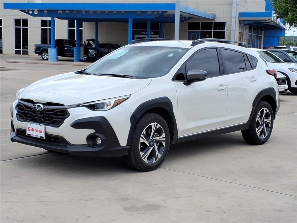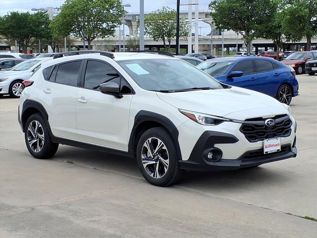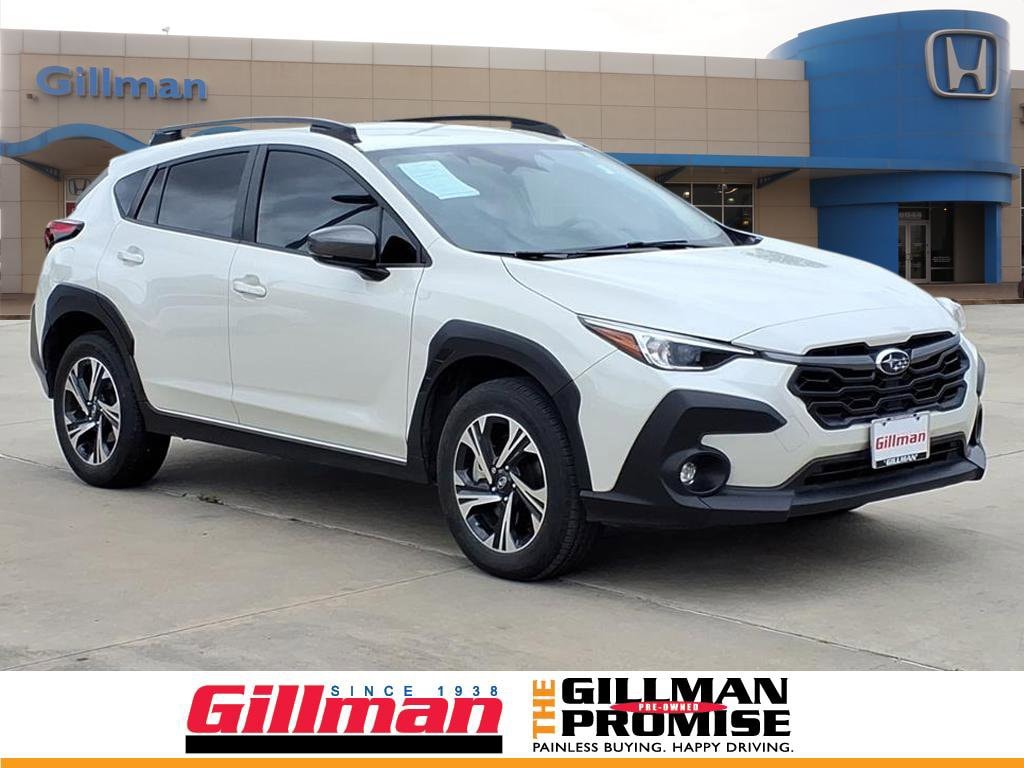 Gillman's Lifetime Engine Warranty lasts as long as you own your vehicle - free with the Gillman Pre-Owned Promise. If the vehicle isn't right for you, return it in purchase condition within 2 days or 200 miles as part of our Happy-Driving Guarantee. (Valid on vehicles under 90,000 miles and less than 7 years old). Discover adventure in this 2024 Subaru Crosstrek Premium AWD, finished in stunning white. With Subaru's legendary symmetrical all-wheel drive and a capable 2.0L H4 engine paired to a smooth CVT, you're ready for city streets or off-road escapes. Stay safe and connected with advanced features like front and rear automatic emergency braking, lane keeping assist, adaptive cruise control, and pedestrian detection. Enjoy wireless Apple CarPlay and Android Auto on the impressive 11.6-inch STARLINK touchscreen, plus SiriusXM and HD Radio for all your entertainment needs. Comfort comes standard with premium cloth seats, automatic climate control, and split-folding rear seats for versatile cargo space. Additional highlights include LED headlights, keyless entry with push-button start, rearview camera, and roof rails for added utility. Experience reliability, technology, and safety in one package-visit us for a test drive today! All vehicles subject to prior sale. We are not responsible for typographical errors and may change information without notice. Photos may not depict the actual vehicle. Tax, title, and license fees not included. Dealer Discount available to all buyers.Vehicles purchased from Gillman Automotive Group include a Bring It Back Guarantee: return the vehicle in purchase condition within two days or 200 miles. New current-model-year vehicles and qualifying pre-owned vehicles (under 90,000 miles and less than 7 years old) are eligible. Guarantee is non-transferable and has no cash value. Lifetime Warranty available on select pre-owned vehicles. See dealer for details; restrictions may apply.