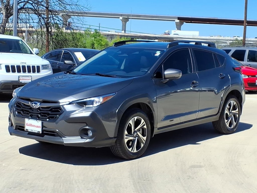 Gillman's Lifetime Engine Warranty lasts as long as you own your vehicle - free with the Gillman Pre-Owned Promise. If the vehicle isn't right for you, return it in purchase condition within 2 days or 200 miles as part of our Happy-Driving Guarantee. (Valid on vehicles under 90,000 miles and less than 7 years old). Take on any adventure with this 2024 Subaru Crosstrek Premium AWD in sleek gray! Enjoy peace of mind with Subaru's renowned all-wheel drive, advanced safety features like Front Automatic Emergency Braking, Lane Keeping Assist, and Rear Automatic Emergency Braking. Stay connected on the go with a large 11.6-inch STARLINK infotainment screen, Wireless Apple CarPlay and Android Auto, plus multiple USB and USB-C outlets for all your devices. Comfort meets versatility with premium cloth upholstery, split-folding rear seats, and plenty of cargo space. Adaptive cruise control, automatic climate control, and push-button start add convenience to every drive. This Crosstrek is ready for the road with LED headlights, roof rails, and a fuel-efficient 2.0L engine paired to a smooth CVT. Don't miss your chance to own a stylish, capable crossover loaded with the latest technology and safety. All vehicles subject to prior sale. We are not responsible for typographical errors and may change information without notice. Photos may not depict the actual vehicle. Tax, title, and license fees not included. Dealer Discount available to all buyers.Vehicles purchased from Gillman Automotive Group include a Bring It Back Guarantee: return the vehicle in purchase condition within two days or 200 miles. New current-model-year vehicles and qualifying pre-owned vehicles (under 90,000 miles and less than 7 years old) are eligible. Guarantee is non-transferable and has no cash value. Lifetime Warranty available on select pre-owned vehicles. See dealer for details; restrictions may apply.Certified Pre-Owned