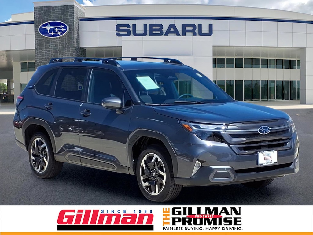 Gillman's Lifetime Engine Warranty lasts as long as you own your vehicle - free with the Gillman Pre-Owned Promise. If the vehicle isn't right for you, return it in purchase condition within 2 days or 200 miles as part of our Happy-Driving Guarantee. (Valid on vehicles under 90,000 miles and less than 7 years old). Experience the future of versatility and safety with this 2026 Subaru Forester AWD Limited in striking gray, boasting only 2,456 miles! This well-equipped crossover features Subaru's legendary all-wheel drive and a suite of advanced safety technologies including Reverse Automatic Braking, Intersection Turn Pre-collision Warning, Front and Pedestrian Automatic Emergency Braking, Blind Spot Detection, and Adaptive Cruise Control with Lane Centering. Enjoy premium comfort with leather-trimmed upholstery, heated front seats, and a power panoramic moonroof. Stay seamlessly connected with the 11.6" Subaru Infotainment System, Harman Kardon audio, integrated navigation, wireless Apple CarPlay/Android Auto, and a wireless charging station. Convenience is at your fingertips with a power liftgate, auto-dimming mirrors with approach lighting, and proximity keyless entry. Designed for both adventure and daily commutes, this Forester delivers confidence, technology, and comfort in every mile. Visit us today and drive home Subaru's best for 2026! All vehicles subject to prior sale. We are not responsible for typographical errors and may change information without notice. Photos may not depict the actual vehicle. Tax, title, and license fees not included. Dealer Discount available to all buyers.Vehicles purchased from Gillman Automotive Group include a Bring It Back Guarantee: return the vehicle in purchase condition within two days or 200 miles. New current-model-year vehicles and qualifying pre-owned vehicles (under 90,000 miles and less than 7 years old) are eligible. Guarantee is non-transferable and has no cash value. Lifetime Warranty available on select pre-owned vehicles. See dealer for details; restrictions may apply.Certified Pre-Owned