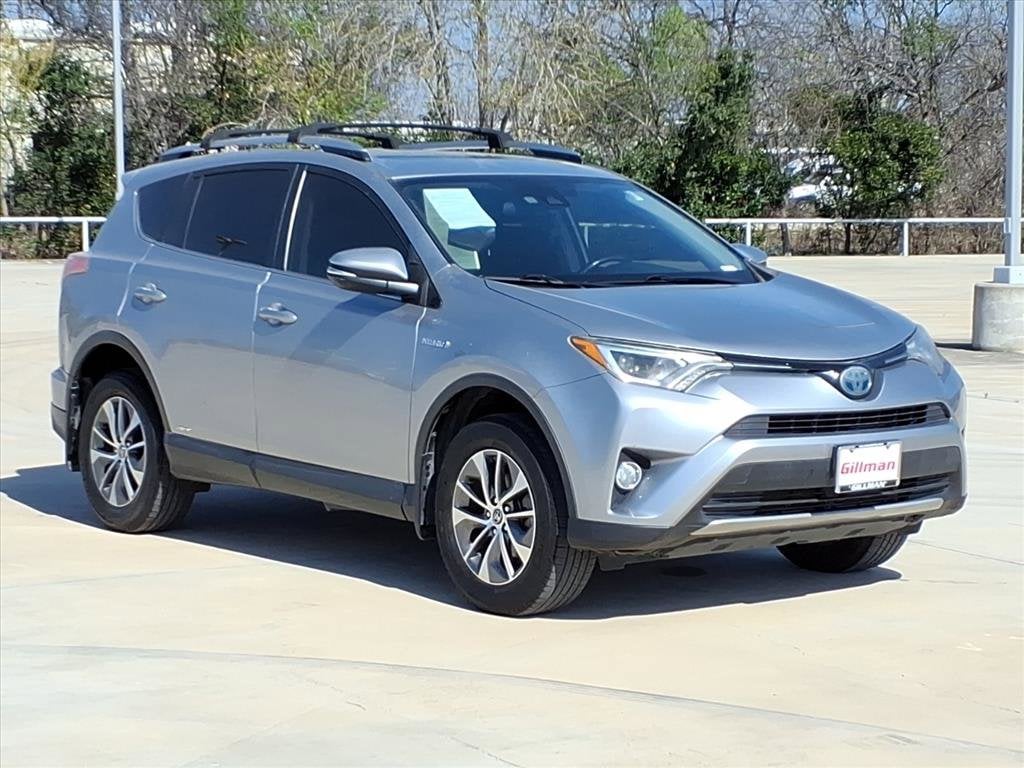 Gillman's Lifetime Engine Warranty lasts as long as you own your vehicle - free with the Gillman Pre-Owned Promise. If the vehicle isn't right for you, return it in purchase condition within 2 days or 200 miles as part of our Happy-Driving Guarantee. (Valid on vehicles under 90,000 miles and less than 7 years old). Experience efficiency and versatility with this Silver 2018 Toyota RAV4 Hybrid AWD XLE. Equipped with a fuel-saving 2.5L Hybrid engine and all-wheel drive, this SUV is ready for any adventure. Enjoy advanced safety features like Lane Keeping Assist, Adaptive Cruise Control, Automatic Emergency Braking with Pedestrian Detection, and a Rearview Camera for added peace of mind. Inside, you'll find a spacious cabin with a power moonroof, dual-zone automatic climate control, and convenient tech such as a 6.1-inch touchscreen, Bluetooth connectivity, Entune infotainment, and SiriusXM Satellite Radio. Aluminum alloy wheels, heated side mirrors, and roof rails add style and practicality. The RAV4 Hybrid also includes a Drive Mode Selector, push-button start, and split-folding rear seats for flexible cargo space. Perfect for families or commuters seeking reliability, comfort, and exceptional fuel economy. All vehicles subject to prior sale. We are not responsible for typographical errors and may change information without notice. Photos may not depict the actual vehicle. Tax, title, and license fees not included. Dealer Discount available to all buyers.Vehicles purchased from Gillman Automotive Group include a Bring It Back Guarantee: return the vehicle in purchase condition within two days or 200 miles. New current-model-year vehicles and qualifying pre-owned vehicles (under 90,000 miles and less than 7 years old) are eligible. Guarantee is non-transferable and has no cash value. Lifetime Warranty available on select pre-owned vehicles. See dealer for details; restrictions may apply.